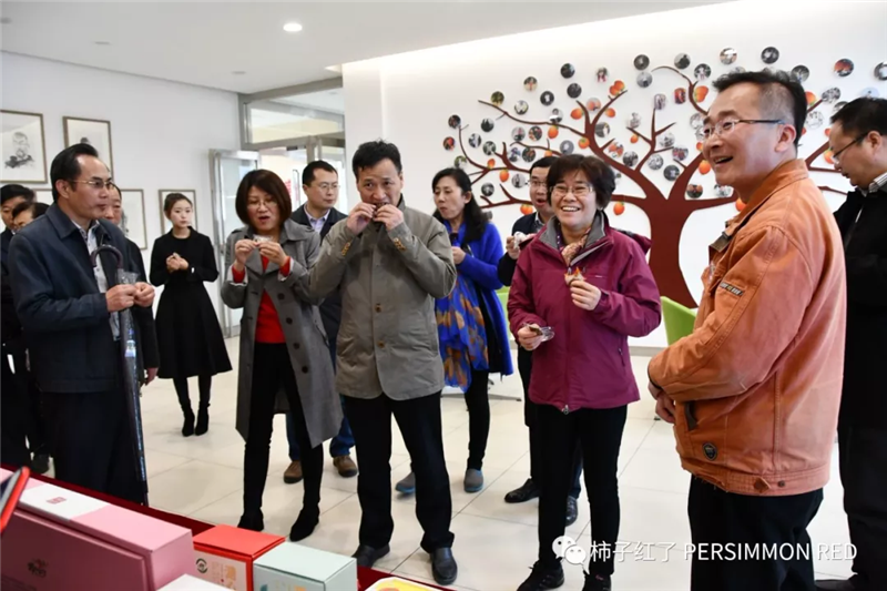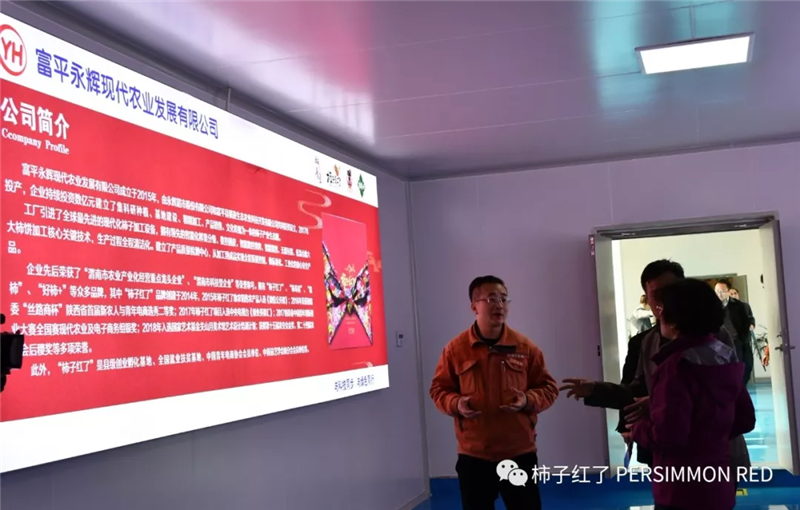 剛到廠門口,就受到了富平永輝全體工作人員的熱烈歡迎。黃立紅一行興致勃勃地走進廠區(qū),聽取專業(yè)人員的講解和柿子產(chǎn)品的介紹、并品嘗了公司旗下的“柿子紅了”“柿餅+核桃”等產(chǎn)品,嘖嘖稱贊味道好極了。