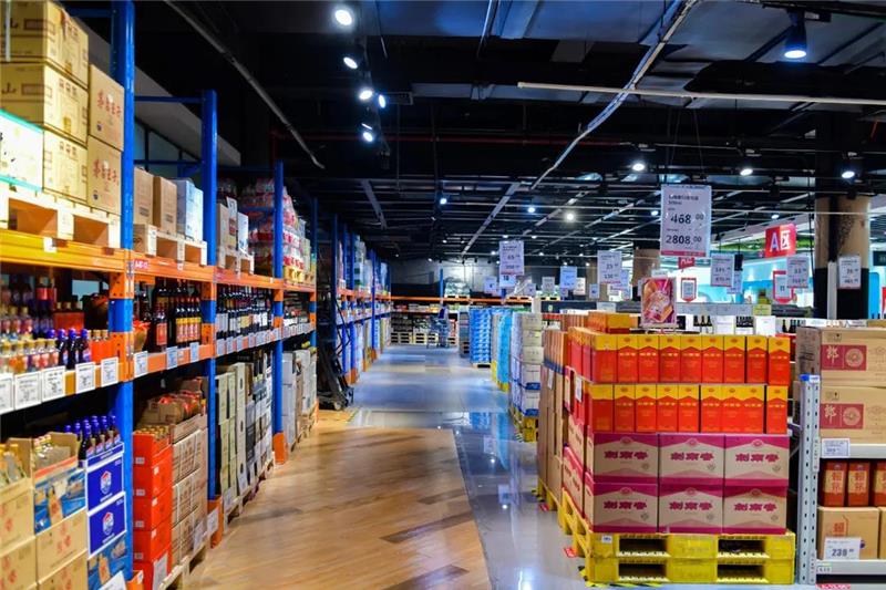 超市的布局分為酒水飲料區、生鮮食品,烘焙區、肉類海鮮區、休閑食品區、日用百貨等,擺放有序,品類齊全,一站式可以滿足家庭所需。