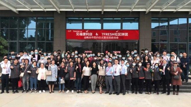 ▲見福便利店&7FRESH社區(qū)拼團(tuán)戰(zhàn)略合作簽約儀式
