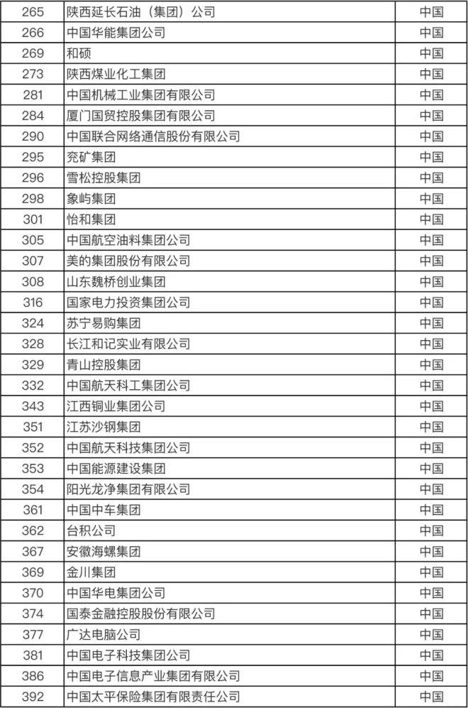 以下為2020年《財(cái)富》世界500強(qiáng)中國榜單: