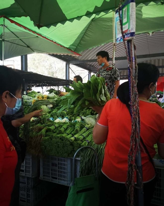 雙峪市場的大門不是很顯眼,但是往里走就是另一番天地。這里按照產(chǎn)品種類進行了銷售區(qū)域劃分,有水果大廳、蔬菜大廳、肉類大廳、服裝大廳,周圍一些小門店都是日用百貨店,分為雜貨區(qū)、調(diào)料區(qū)、主食區(qū),還有服裝加工、配鑰匙等便民服務。蔬菜大廳最為熱鬧,商販們的叫賣聲此起彼伏,人們拉著各種小推車在菜攤前挑選商品,時不時地還能碰到街坊鄰居打個招呼。這里的煙火氣最為濃烈。