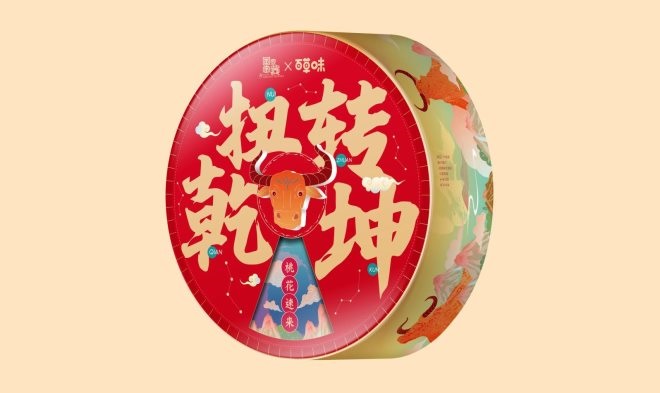 為迎接牛年,百草味聯合國家寶藏推出了以青銅亞長牛尊為創意的“扭轉乾坤”禮盒,“扭轉乾坤”禮盒采用立體牛頭旋轉的創意設計,盒蓋為天、盒身為地,當快速轉動牛頭時,整個盒身會呈現出圣牛奔跑的畫面,寓意牛氣沖天、轉動乾坤,轉出新年好運氣。“多寶盒”禮盒則以“四牛鎏金騎士銅貯貝器”為創意來源,盒身取自古代多寶盒形制,運用巧妙的收納設計,象征古代人的聚寶盆,寓意天下美好盡匯一堂,聚集好運好財好果,守護一整年的好福氣。百草味與國家寶藏的聯名,將國寶的美好寓意搬進產品中,為年禮賦予深厚的文化內涵,是百草味深挖傳統年味的創新一步。