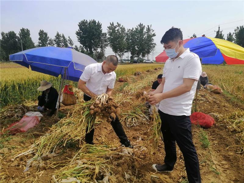 5月21日,河南永輝超市生鮮采購負責人席晨杰、蔬菜采購負責人曹吉祥驅車來到距離公司50公里外的中牟縣,幫助這里蒜農解決滯銷在田間地頭的大蒜。