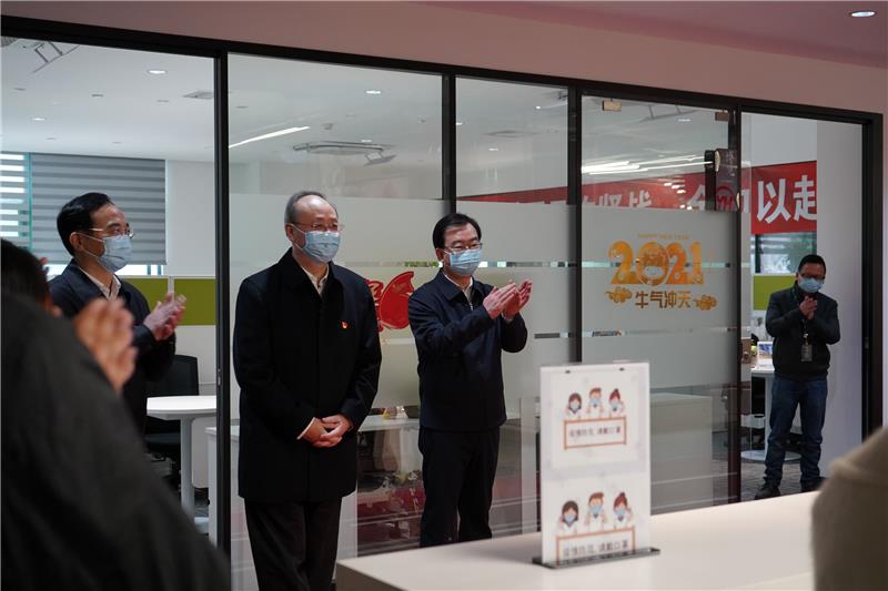 尹力、王寧等省市領導一行在張軒松的陪同下,深入了解超市線上線下銷售和倉儲情況,詳細查看生鮮水產、肉類和乳制品等貨品質量價格,并親切慰問假期堅守崗位的超市快遞小哥們。尹力、王寧叮囑永輝超市要精心組織貨源,穩(wěn)定市場價格,保障節(jié)日期間的商品供應。