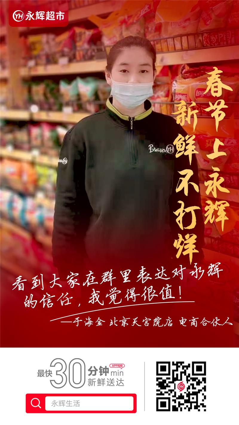 電商合伙人 于海金:北京大興區(qū)天宮院區(qū)域封閉管理以來,周邊小區(qū)居民的生活物資告急。我們天宮院店全體堅守一線,協(xié)調(diào)十個門店,對應(yīng)十八個封閉小區(qū)的物資供應(yīng),完成訂單配送三萬多單,為隔離家庭送去物資、送去溫暖。