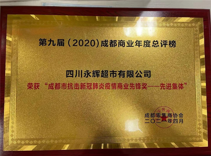 2021年4月14日,成都零售商協會舉行第九屆(2020)成都商業年度總評榜頒獎儀式。四川永輝超市有限公司榮獲 “抗疫先進集體”稱號,以表彰永輝在疫情防控中做出的突出貢獻。