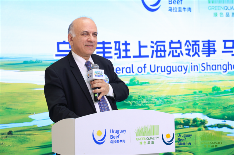 活動(dòng)中,烏拉圭駐上海總領(lǐng)事馬塞羅·馬龍先生曾在現(xiàn)場(chǎng)致辭中對(duì)烏拉圭作為全球頂級(jí)牛肉出口國(guó)的卓越品質(zhì)與可持續(xù)生產(chǎn)理念進(jìn)行了介紹,同時(shí)表達(dá)了烏拉圭政府對(duì)中國(guó)市場(chǎng)的高度重視與合作誠(chéng)意。