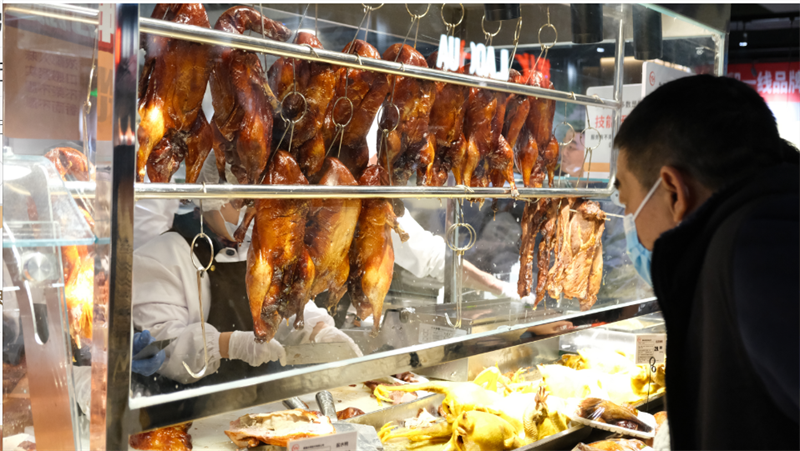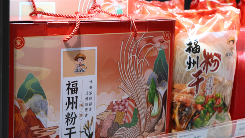 除了本地的生鮮商品,主食方面,有閩清茶口粉干、閩侯桐口粉干、福州線面等等,酒類有青口青紅酒、鼓山福建老酒等等,年貨方面,福州人逢年過節常吃的禮餅、芋泥、八寶飯、年糕等都有銷售,品牌方面,鼎鼎肉松、日立有肉松、大世界橄欖蜜餞、賽園蜜餞這些“福州老牌”也進入了“福州特色商品館”。如果想要現場來一口福州味道,熱騰騰的魚丸、肉燕、拌面、鍋邊等都可以現制現買現吃。